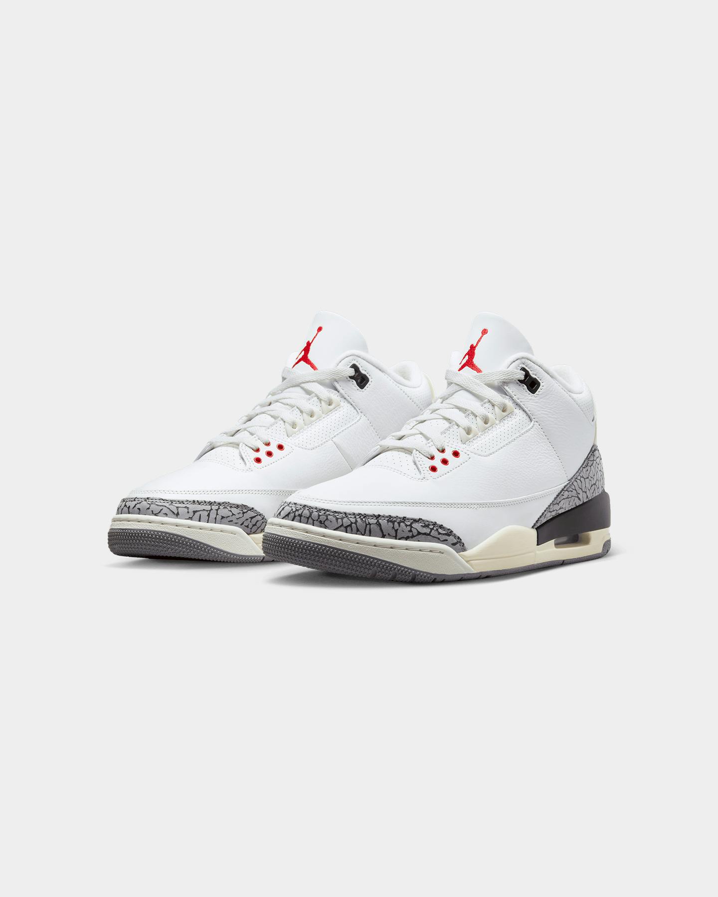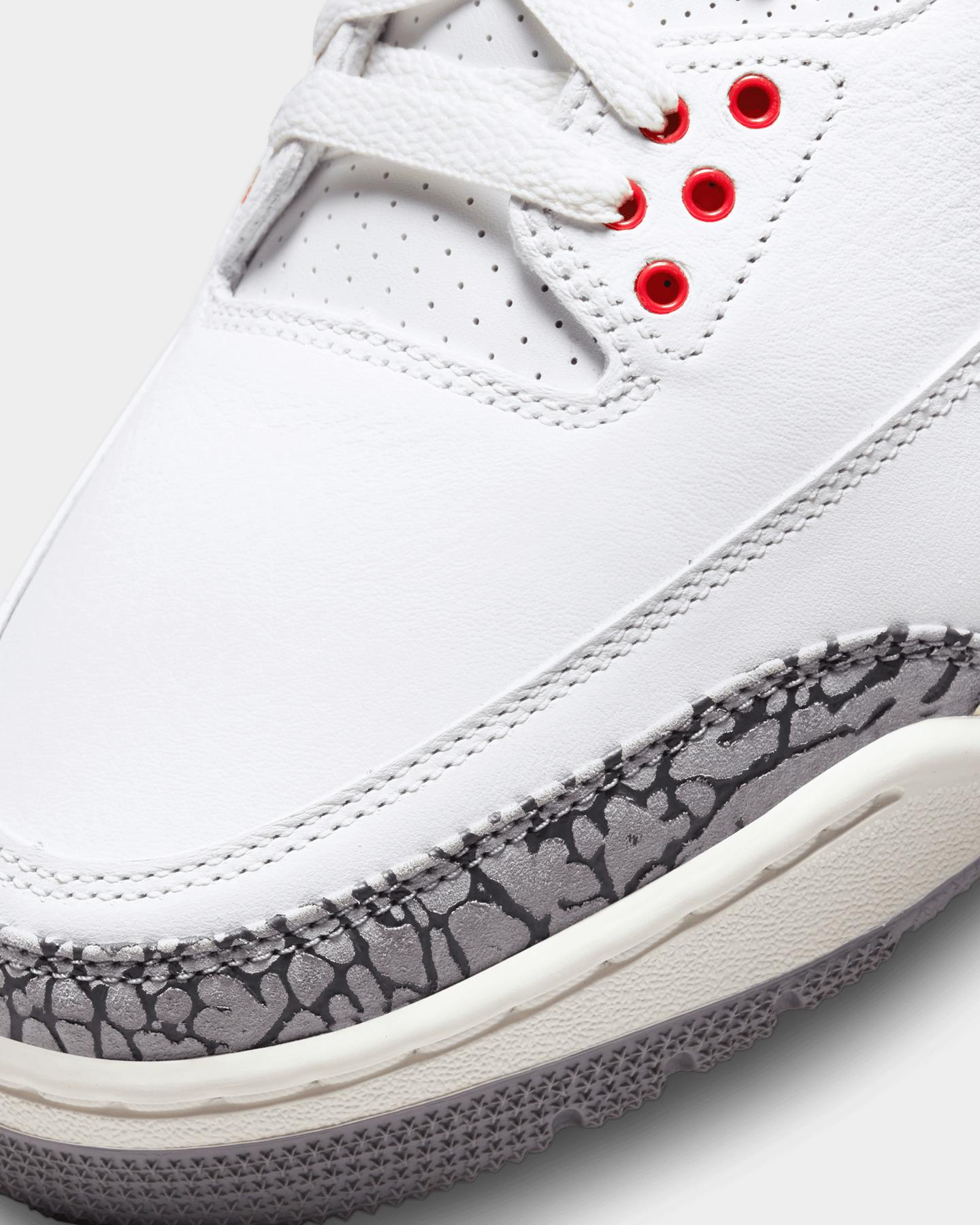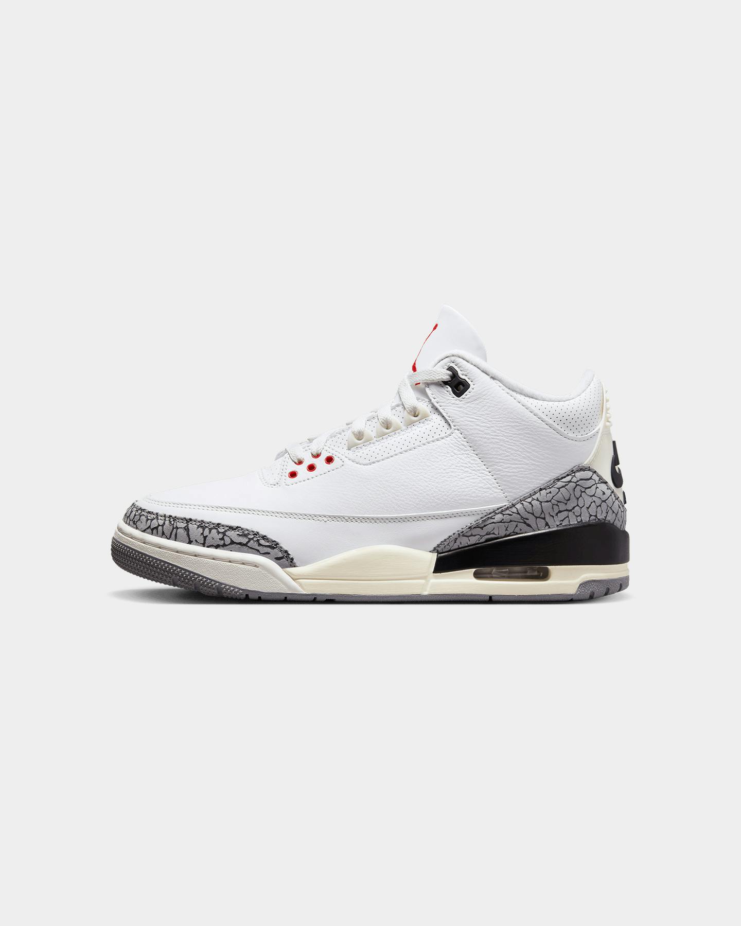 Step back to 1988 with one of the most coveted sneaker colorways of all time. The AJ3 "White Cement Reimagined" honors 35 years with an aged aesthetic that redefines timeless. Bring the vintage vibes with yellowing on the midsole, eyelets and backtab, plus classic Nike Air branding at the heel. Elephant print (updated to replicate the '88 original) and splashes of Sail and Fire Red keep the original design alive and well—and keep you in your element. Clutch!